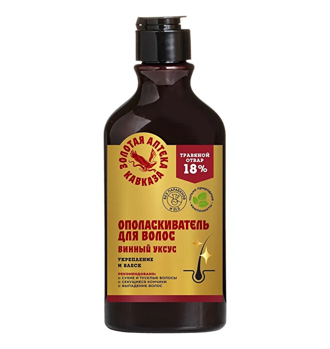 Отличное средство для укрепления и оздоровления волос, придания им блеска. Винный уксус делает пряди послушными и гладкими. Фитокератин увлажняет волосы, улучшает их структуру, придает силу. Отвары и экстракты целебных трав нормализуют жирность волос, уменьшают их ломкость, предотвращают появление перхоти.